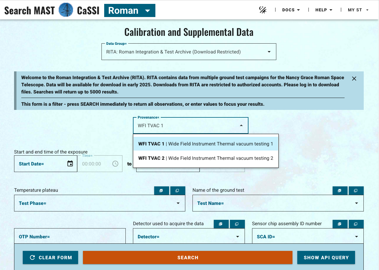 Access to the RITA and the Supplemental and Telemetry Data Files interfaces is restricted to authorized user accounts, typically reserved for select mission partners as needed. If you believe that you require access to either RITA or the Supplemental and Telemetry Data Files interfaces, please contact the Roman Help Desk for assistance.