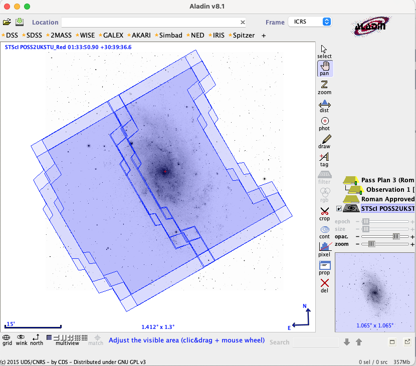 To view a Pass Plan in Aladin, select a Pass Plan in the left panel, then click the View in Aladin button.