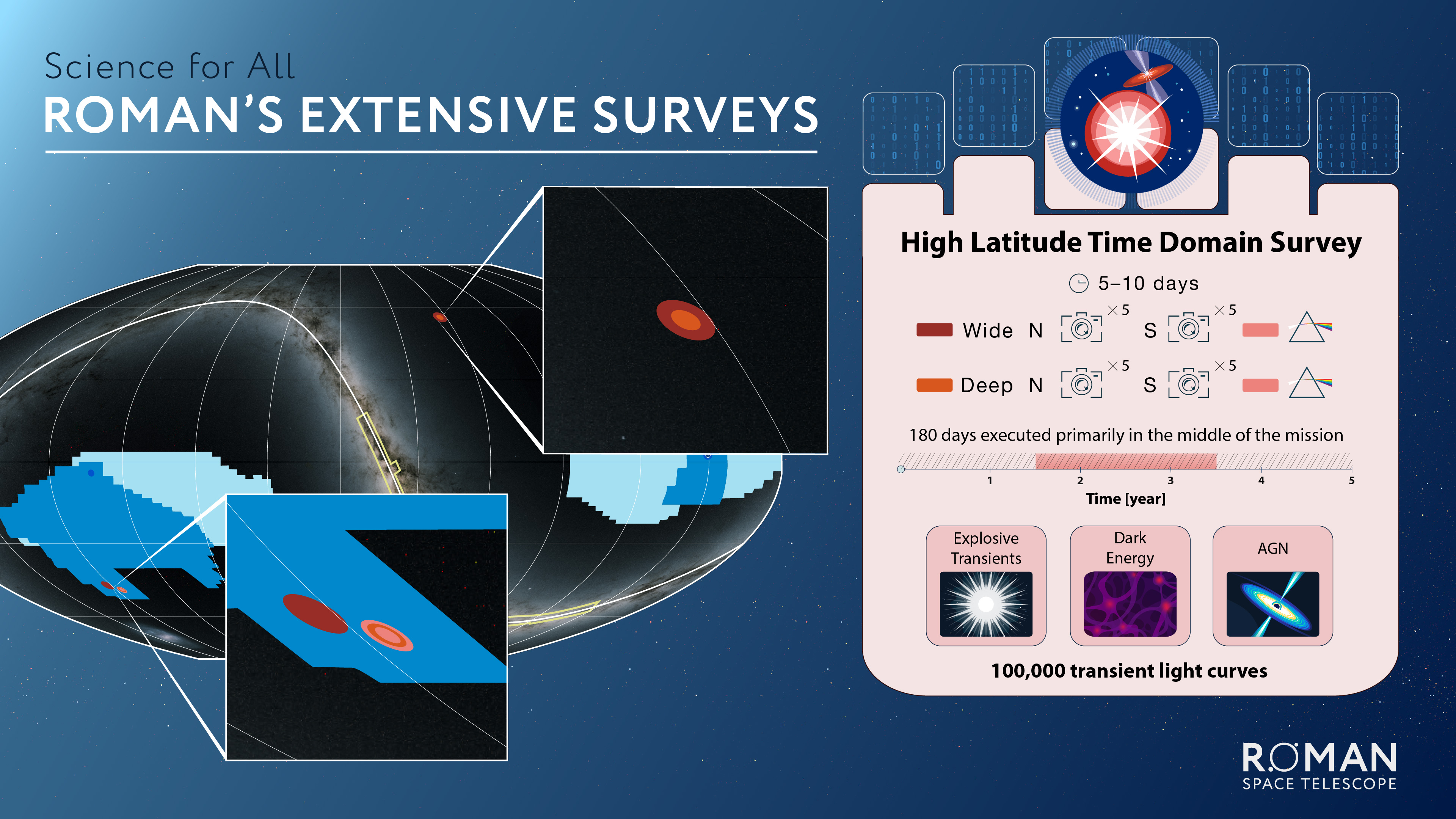 Although the community-defined surveys are fully specified, the exact scheduling of observations has yet to be finalized. The timing depends on several factors, including the start of Roman’s science operations, the selection of General Astrophysics Surveys, and target choices and timing within the coronagraph instrument allocation. Even so, much is already understood about how Roman observations will be scheduled. A summary is available in the observation plan for the first two years article.
