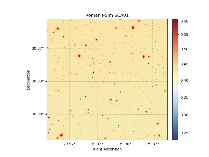 Sample image as simulated using Roman I-Sim output from the matplotlib code example.